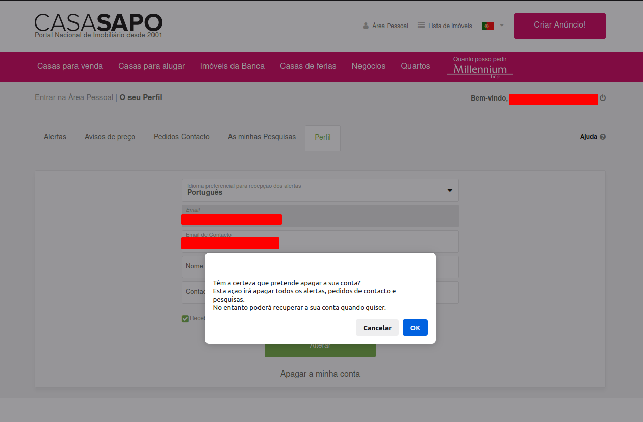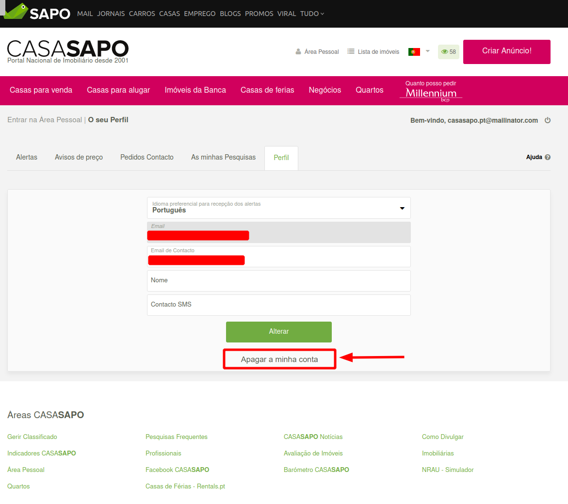 O utilizador pode eliminar a sua conta a qualquer momento, através de https://casa.iol.pt/AreaPessoal/AreaPessoal.aspx?MCSPage=userProfile.